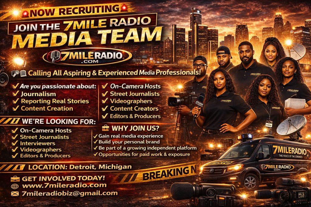 Are you passionate about journalism, broadcasting, or telling real stories that matter? 7Mile Radio is officially expanding—and we’re looking for talented, driven individuals to join our growing media team. We are currently building an independent news team of Black journalists dedicated to covering authentic, on-the-ground stories from across the city of Detroit. This is your opportunity to be part of a movement that gives a voice to the community and highlights stories that often go unheard.